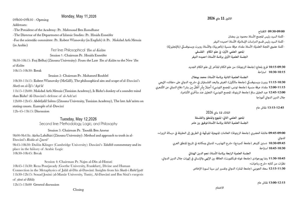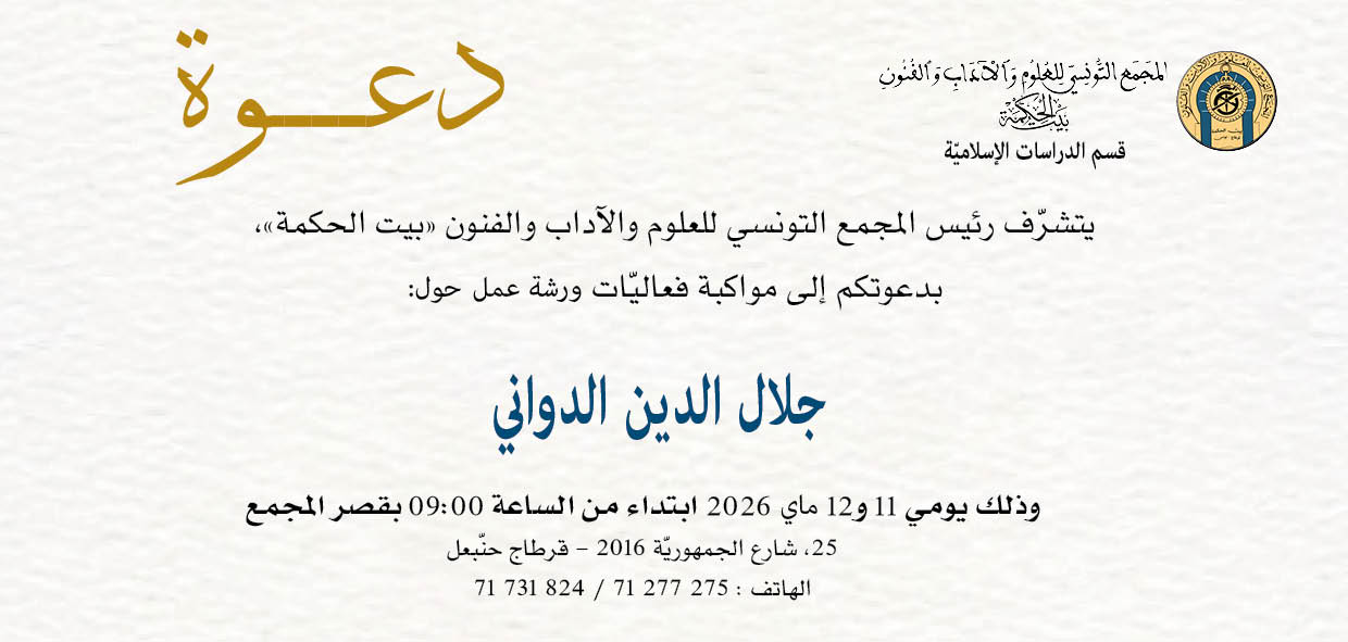 ورشة عمل حول: جلال الدين الدواني بقرطاج – 11 و 12 ماي 2026