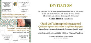 Dans le cadre de la conférence « Quid de l’islamophobie savante? Quelques repères historiques et épistémologiques » organisée, le 13 octobre 2022, par le Département des sciences humaines et sociales de l’Académie tunisienne des sciences, des lettres et des arts, Beit al-Hikma, Gilles Bibeau, professeur émérite au Département d’anthropologie de l’Université de Montréal, a livré un exposé, qui sort des sentiers battus, sur les relations interculturelles entre le monde arabo-musulman et l’Occident, analysant, au passage, les sociétés contemporaines.