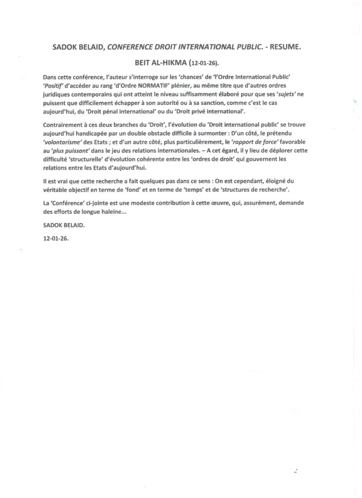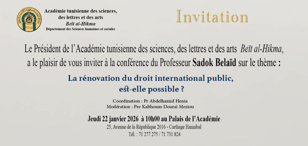 Conférence sur le thème : La rénovation du droit international public, est-elle possible ? – 22 janvier 2026