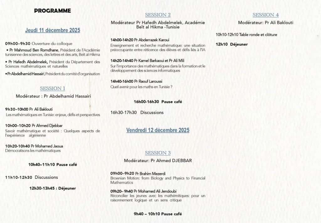 Colloque sur le thème: Sciences mathématiques et société- Les 11 et 12 décembre 2025