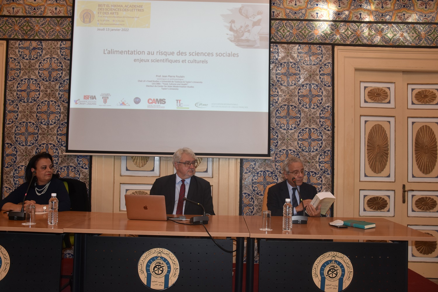 Dans le cadre des activités académiques de l’Académie Tunisienne des sciences, des lettres et des arts « Beït al-Hikma », le Pr. Jean-Pierre Poulain a donné le jeudi 13 janvier 2022, une conférence intitulée : L’alimentation au risque des sciences sociales : enjeux scientifiques et culturels. La conférence a été modérée par l’Académicienne Sihem Debbabi Missaoui.