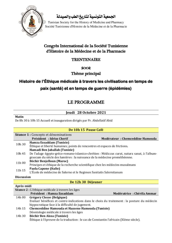 L'Académie Tunisienne Beit al-Hikma Carthage les 28 ,29, 30 Octobre 2021