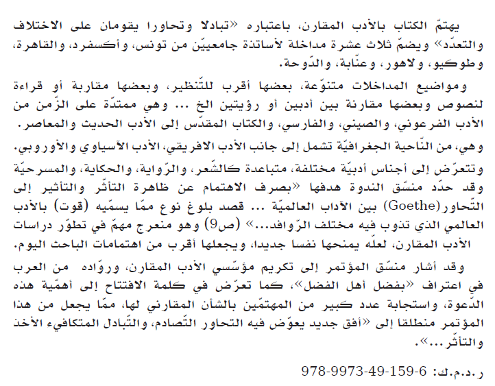 - العنوان : الدّرس المقارني وتحاور الآداب